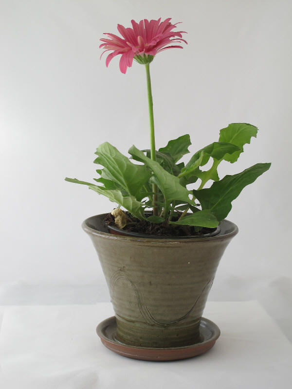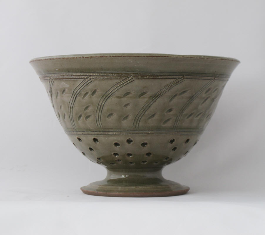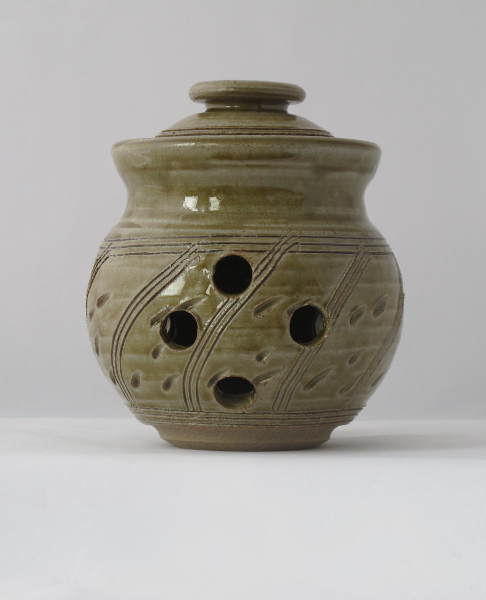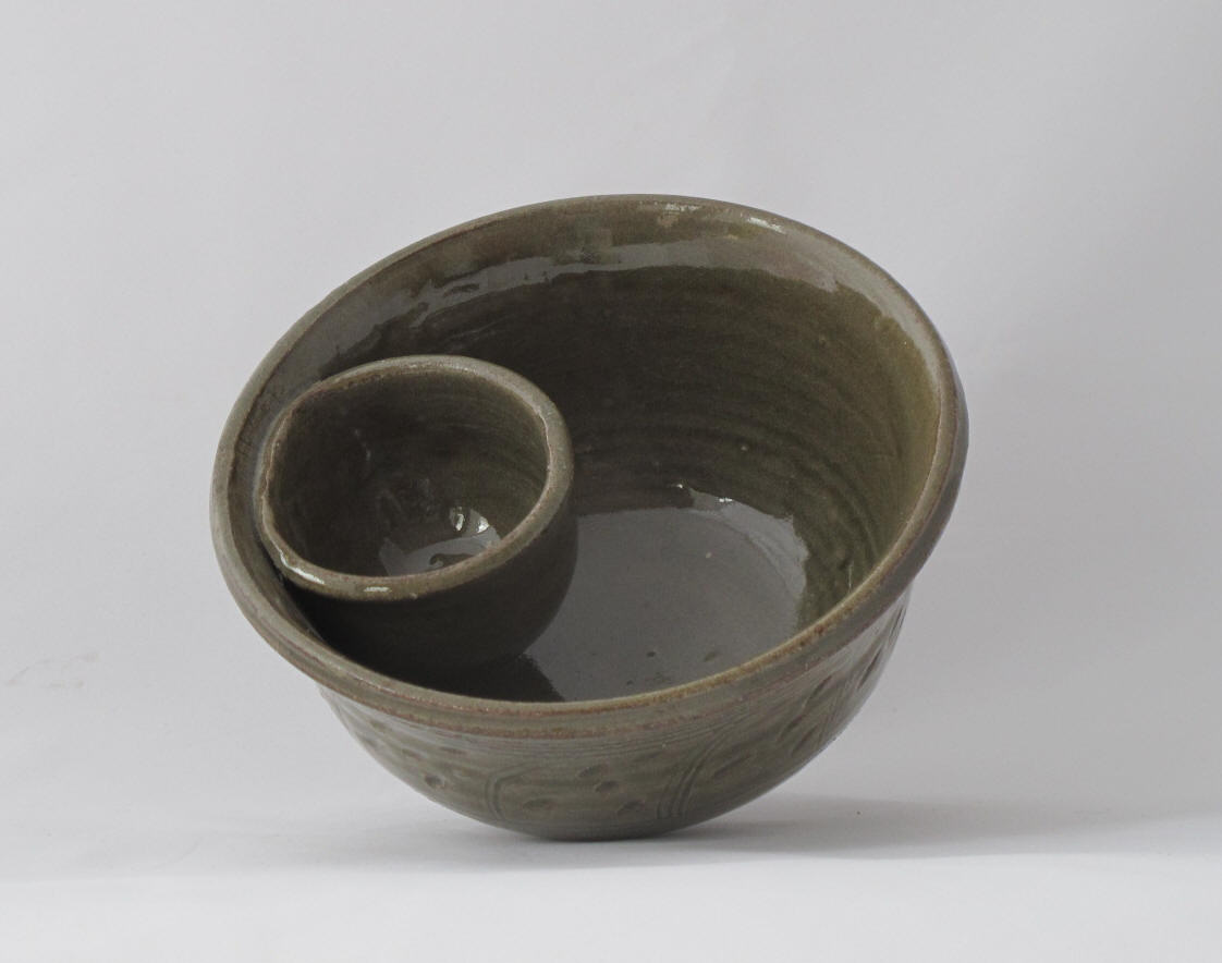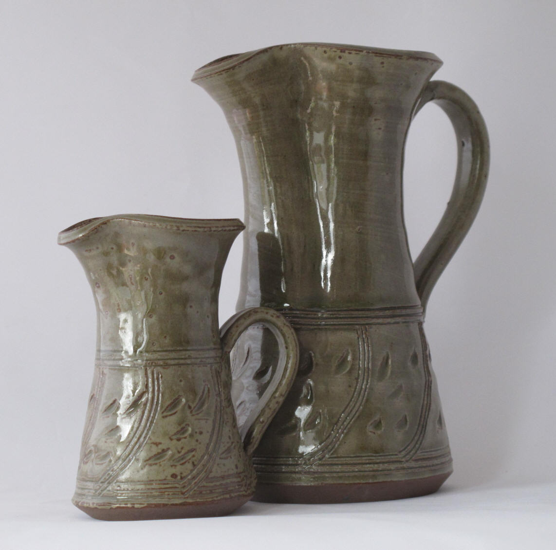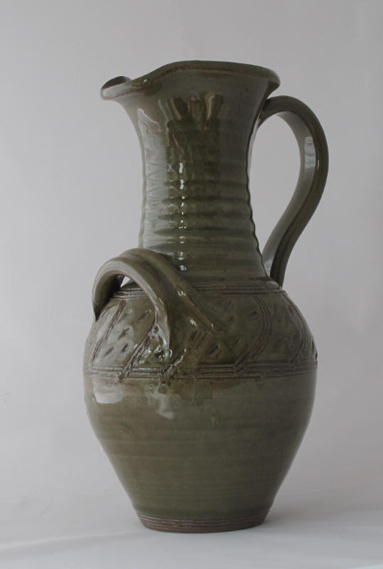 We make a range of hand-thrown tableware in high temperature stoneware clay with a simple wood ash glaze which gives a quiet green glaze, the tones being influenced by the different types of wood used for the ash, now predominantly olive and eucalyptus.