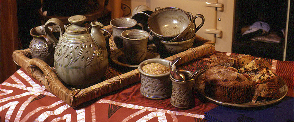 The Rukweza pottery range is an extensive range that we have produced for many years and includes plates, bowls, mugs, serving dishes and many other items. Elizabeth was raised in Zimbabwe and the name "Rukweza" is a Shona word for grain and this is translated into the incised design on the pottery. All our pottery is suitable for microwave and dishwasher.