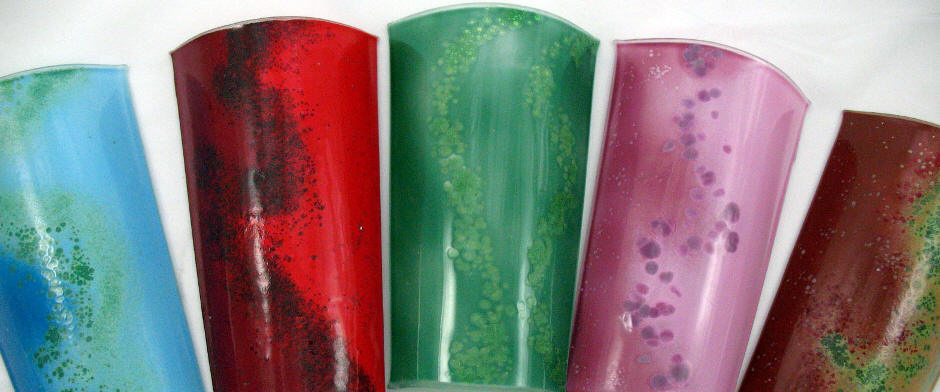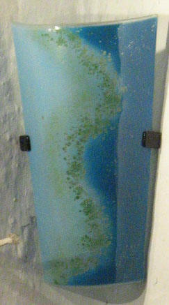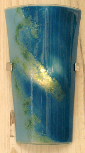 Glass light shades made in the style of a traditional roof tile. They are made to order from our colour range. Our glass wall lights come in two different sizes: Small (28cm) and Large (39cm). product gallery